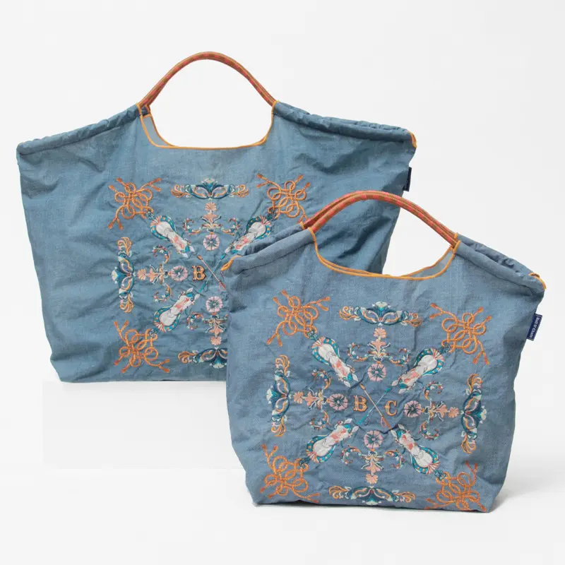 グラフィックデザインをそのまま刺繍で表現することで高級感とデザイン性を両立。耐久性・撥水性に優れた厚手素材を使用しており、重い荷物の持ち運びも安心です。折りたたむと手のひらサイズになり、買い物や外出中に荷物が増えた時にも便利。エコバッグとしても、プレゼントやギフトとしても人気のアイテムです。