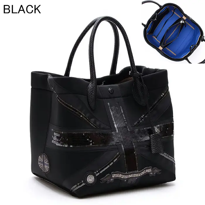 一世を風靡したユニオンジャックのシークイン加工を復刻。本体カラーに合わせた華やかな配色となっています。