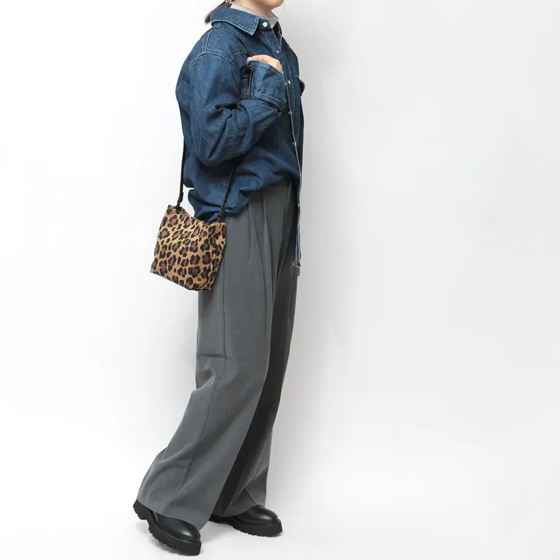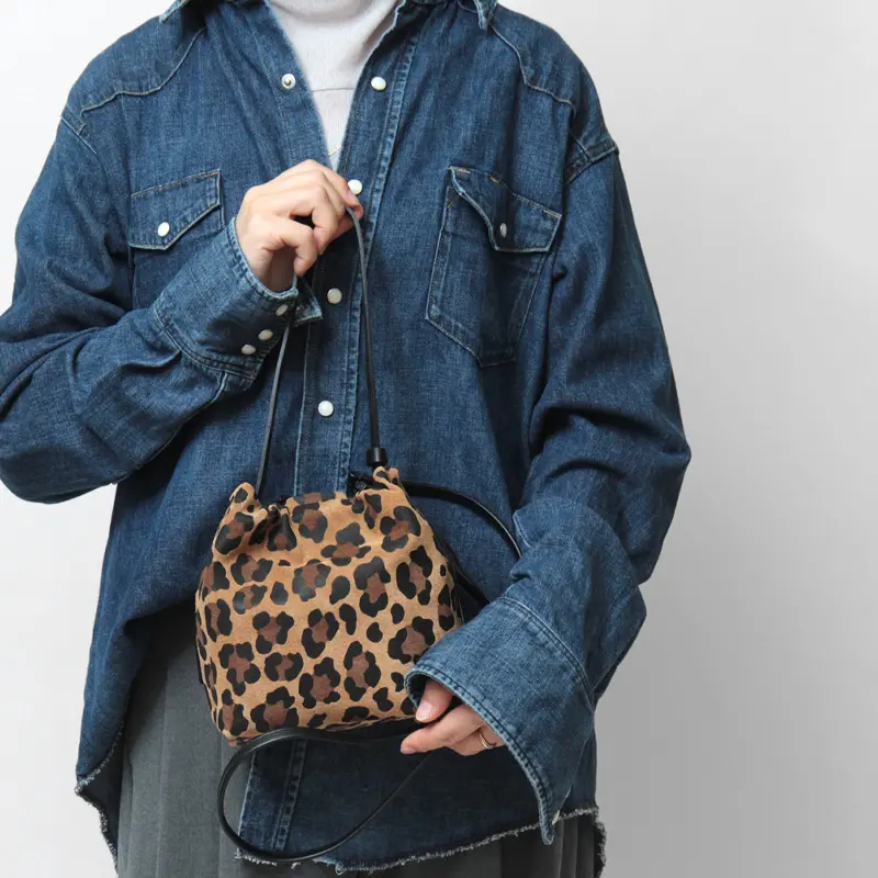 シンプルでタイムレスなフォルムが魅力の日本発ブランド"TESSEN CREATION テッセンクリエーション"。 ブランドコンセプトの土台となった"BASIC POUCH"シリーズから、ピッグスエードのレオパード柄が登場。 ミニ財布などが収まるSサイズで、ワンタッチ開閉のマグネット仕様。手提げ・ハンド・ショルダーで3WAYで使える優秀バッグです。軽さと使いやすさにユニークな外見を兼ね備え、着こなしに遊び心をプラスします。