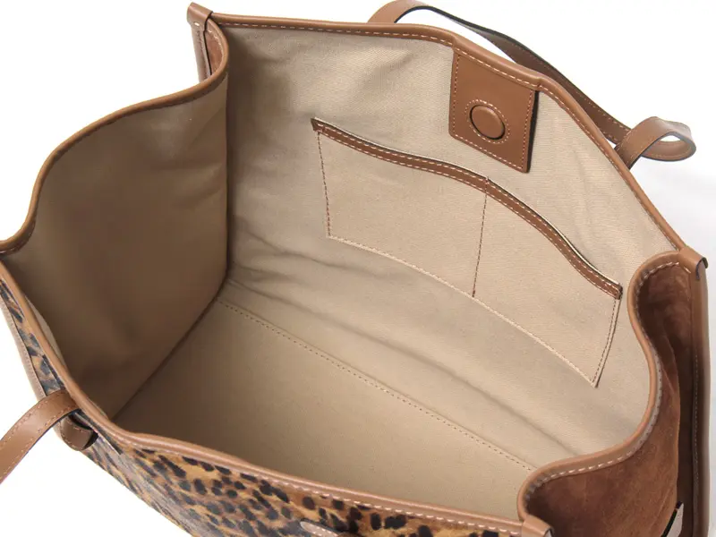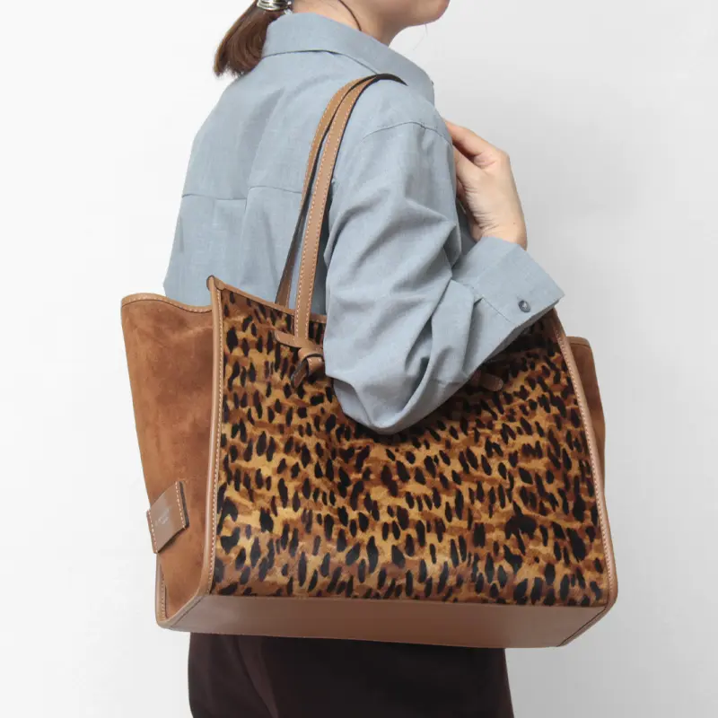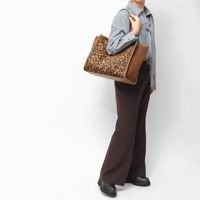 上質なハラコ(ヘアカーフ)にアニマル柄のプリントを施した、個性豊かなバッグ。一つひとつ異なる柄の出方が、唯一無二の個性を演出します。柔らかな毛並みが高級感を醸し出し、持つ人のスタイルに洗練されたアクセントを加えます。普段の装いに、ワンランク上の華やかさと個性を添えるアイテムです。