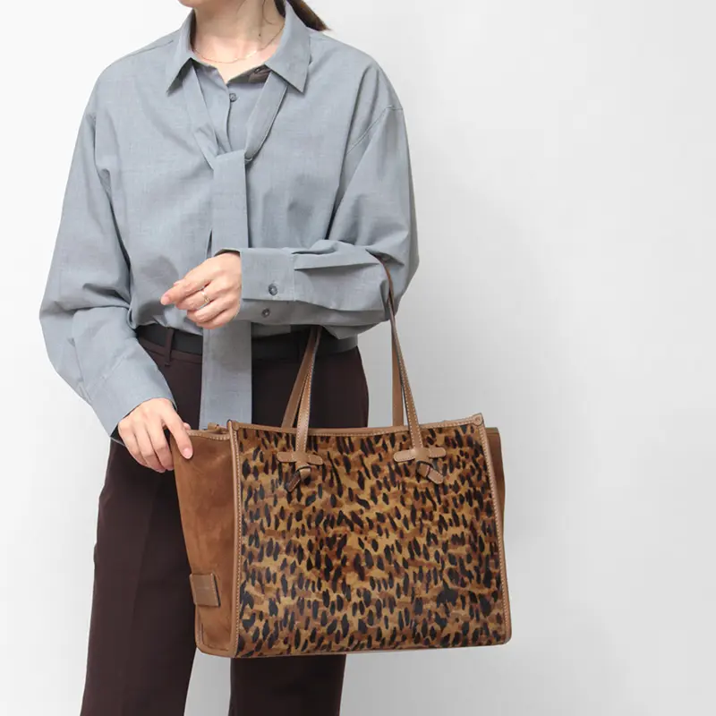 大人の余裕を感じさせるジャンニキャリーニ人気No.1マルチェッラ。レオパード柄のハラコボディと上質なレザーディティールが、コーデを格段に格上げします。愛着を生む道具としての丈夫さ、美しさ、フィレンツェの気品良さを併せ持ち、書類やPC、1泊旅行の荷物まで入る実用性も魅力です。