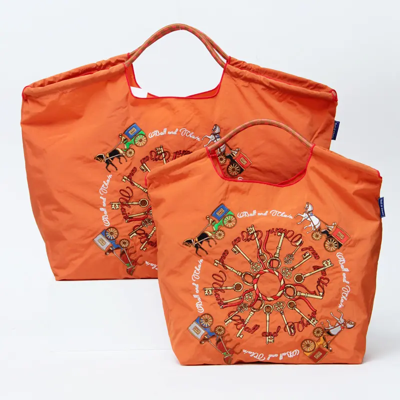 BALL&CHAIN ボールアンドチェーン KEY & CARRIAGE (キー&キャレッジ) エコバッグ (M) (L) オレンジ L