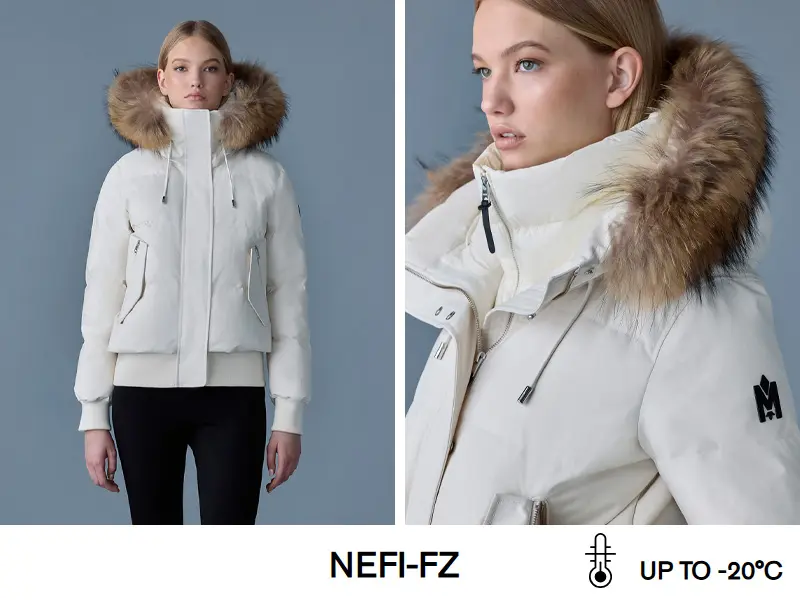 カナダ発のラグジュアリーアウターブランドMACKAGE(マッカージュ)のダウン「NEFI-FZ(ネフィ)」。フライトジャケットをモデファイしたデザインで、インナーにライトダウンを重ねたような二重構造が圧倒的な温かさを実現します。高めのネックとラクーンファーが防寒性とエレガントさを両立。着た瞬間に重さを感じさせないフィット感で、真冬も快適な着心地です。