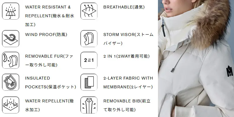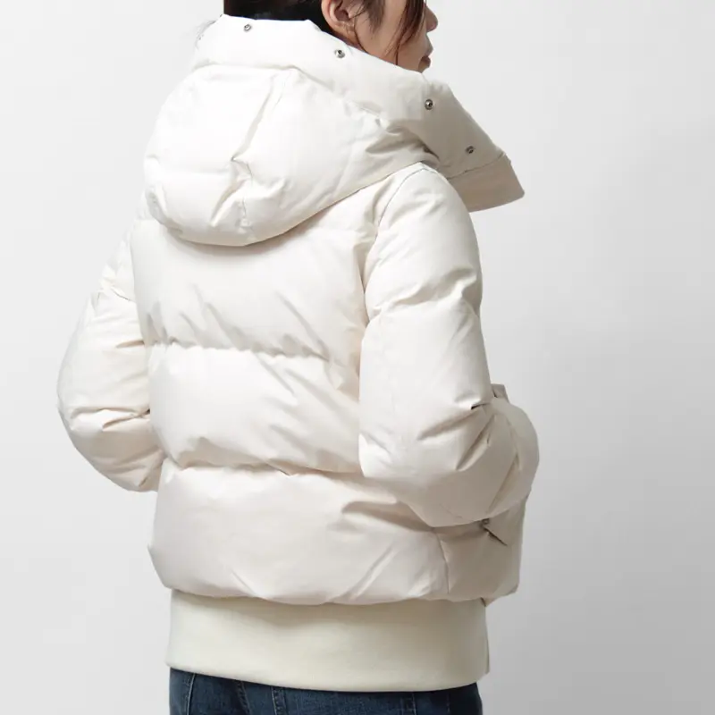 MACKAGEが厳選した高機能素材を採用。表面には撥水加工が施されており、突然の雨や雪の際にも水滴を弾き、汚れがつきにくい安心仕様です。さらに防風性と通気性を両立させた生地が、暖かさを閉じ込めながら蒸れを防ぎ、快適な保温性を実現。永く愛用できる上質なダウンです。