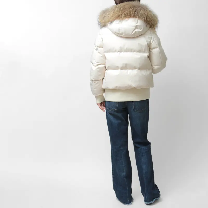 フライトジャケットをベースに、ラクーンファーと上品な素材を加えラグジュアリーな大人のダウンへアップデート。着丈が短い腰までの「ボンバーシルエット」は、脚長効果を生みスカートやワイドパンツにも好バランスです。お布団のような温かさで、真冬の通勤や子どもの送迎など、寒い日の外出もストレスフリーに。