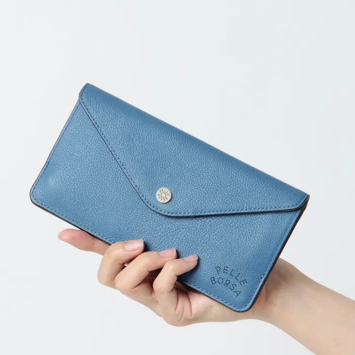"PELLE BORSA"のレザーパンチングがアクセントを効かすVery Goods/ベリーグッズシリーズ。落ち着きのあるニュアンスカラーとポップなカラーのコンビネーションが魅力です。メール型のデザインが可愛いスマートな長財布。定番の長財布よりも一回り小さくコンパクトに仕上がっています。斬新な収納は使い勝手が良く、一度使うと手放せなくなりそうです。