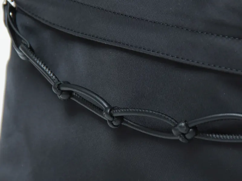 ショルダー紐はスライダーで長さを調節できます。滑らかな素材によりスムーズに調整でき、厚手のアウターを着る季節でもゆったり肩掛けできる設計です。ショルダー紐が斜めに取り付けているのでバッグが自然に体にフィットし、スッキリと持っていただけます。 トップハンドルは実用性とデザイン性を兼ね備え、荷物の持ち運びや電車内での手持ち、フックへの掛け置きもスマートに行えます。