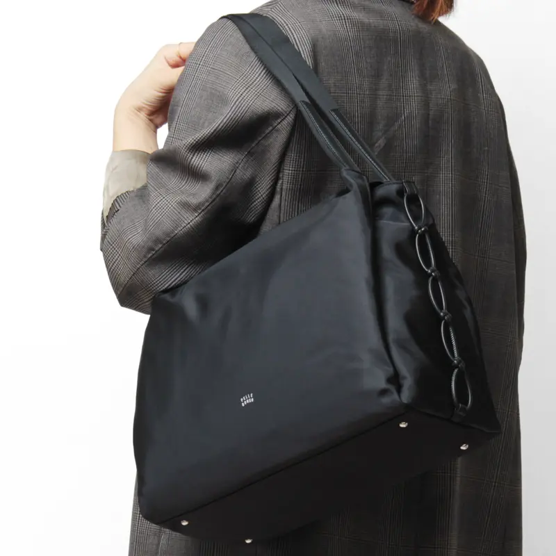 ハンドルには柔らかく手触りのよいコットンテープを使用。肩に優しく、長時間持っても疲れにくい仕様です。通勤・通学からお出かけや旅行まで、オンオフ問わず使える大人のためのトートバッグ。上品な光沢とハリのある生地を使用し、シンプルでスタイリッシュなデザインなので、スーツスタイルにもカジュアルにもマッチし、幅広いシーンで活躍します。