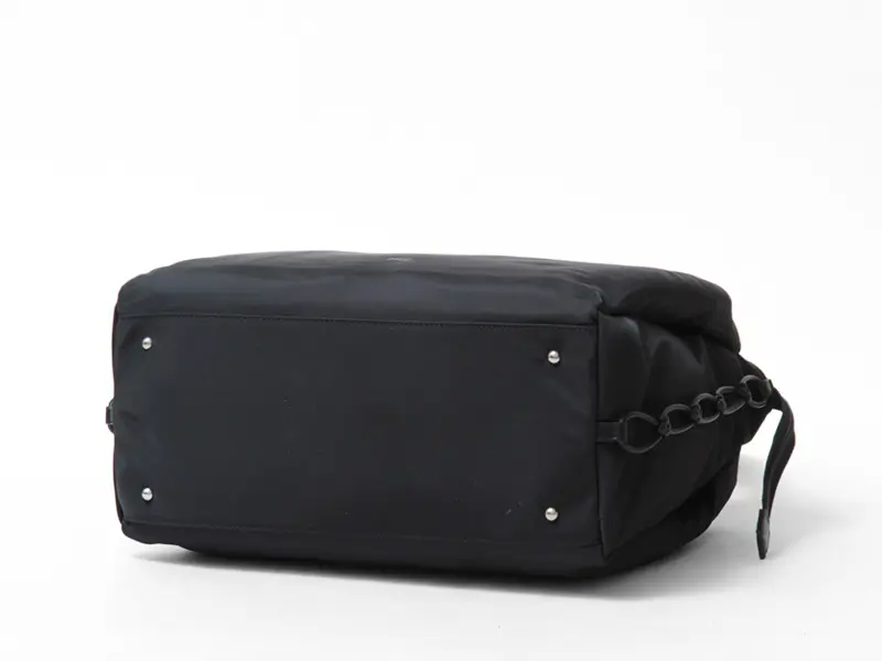 底部には、底びょう(鋲)が取り付けられています。バッグを置いた際の自立性が高まり、地面や床との接触によるキズや汚れから守ります。
