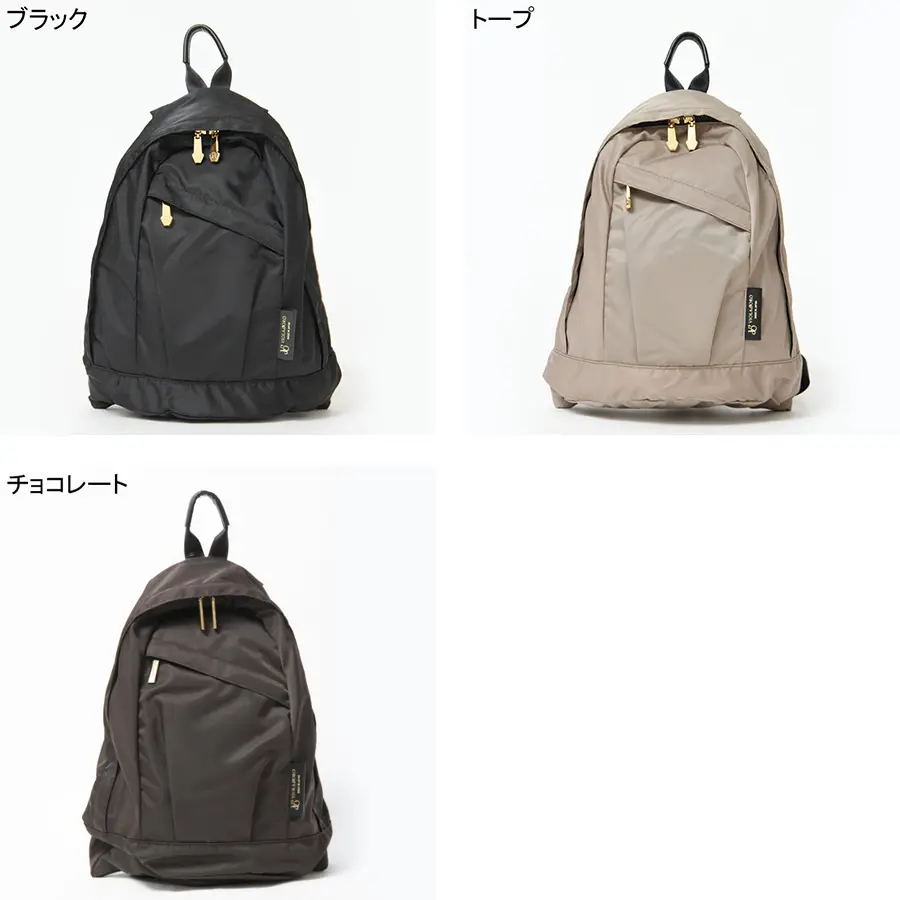 ナイロンの光沢感やすっきりとしたシルエット、ゴールドの金具使いが上品な"VIOLAd'ORO ヴィオラドーロ"のリュック。カジュアルでアクティブな印象のリュックサックも女性らしく、きれいめにも合うのでお仕事スタイルにもぴったりです。A4サイズも収まる大容量で、通勤バッグからマザーズバッグ、旅行など幅広いシーンに最適です。
