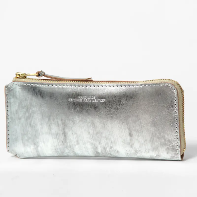 SARANAM サラナン メタリックレザー L字ファスナー 長財布 シルバー