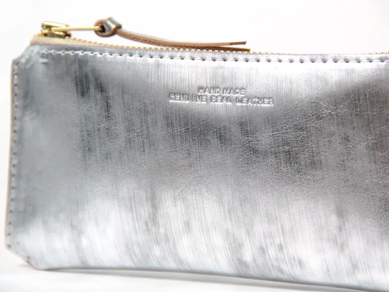 メタリックレザーは、顔料で色付けした後サンドペーパーでやすりをかけた「エコムラレスレザー」を使用。染料ではなく革表面に色を定着させているため、ご使用いただくうちにメタリックな輝きが自然に落ち、内側の本革の色が現れてきます。この変化こそが、使い込むほどに味わい深い自分だけの表情に。持つほどに愛着が深まる経年変化をお楽しみいただけます。