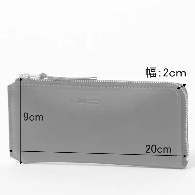 開ける動作まで美しい、L字ファスナータイプ。片側のマチを排したスラント(斜め)な作りと無駄のないシンプルなフォルムが、持つ人に洗練された印象を与えます。極限までスリムに仕上げているため、小さなバッグの中でもかさばらず、いつでもスマートに持ち運べます。