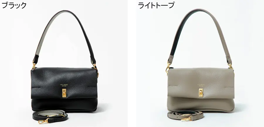 ソフトな質感と軽さが特徴のイタリアンWフェイスレザーを使用した"VIOLAd'ORO ヴィオラドーロ"の"TRERO トレロ"シリーズのショルダーバッグ。シンプルで端正なボディに映えるひねり金具が、控えめながらも華やかなアクセントとなり、装いに上品な印象を添えます。