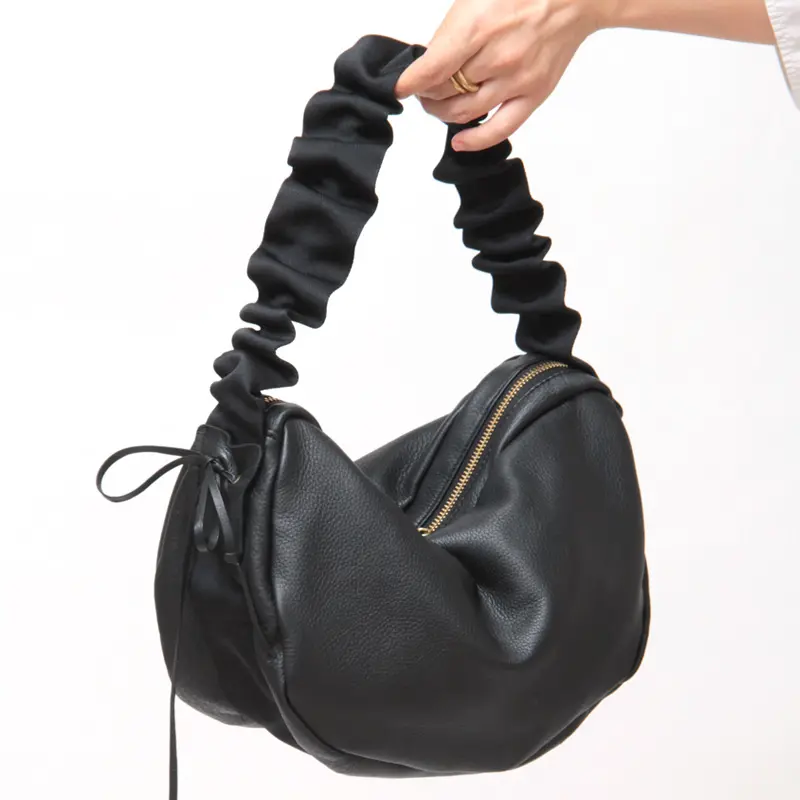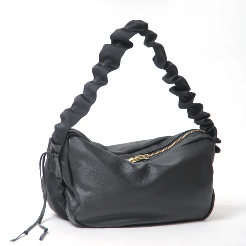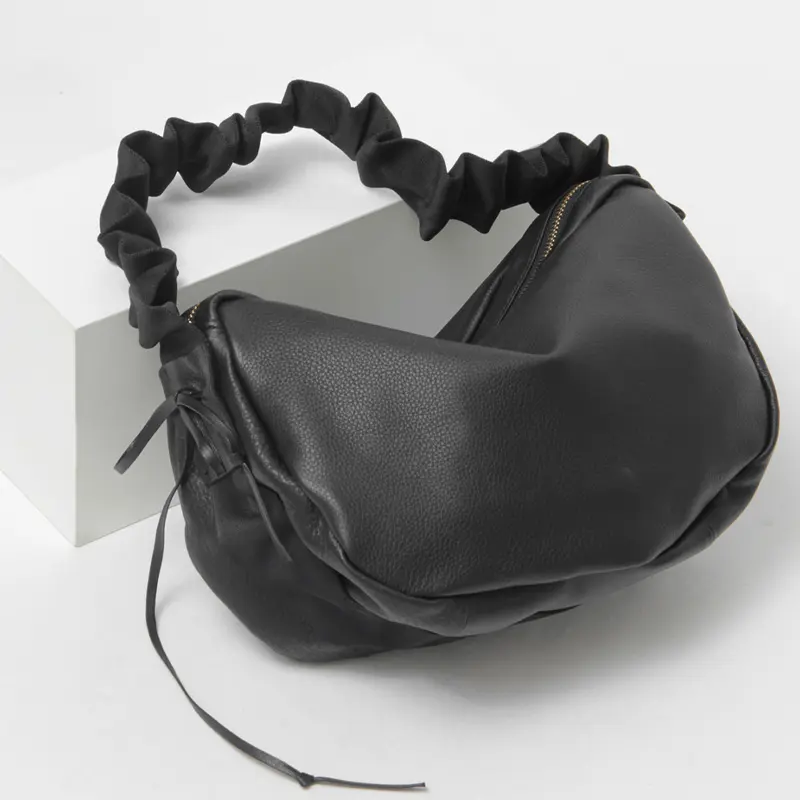 POMTATA ポンタタ RESS シュリンクレザー ギャザー ハンドル バッグ ブラック