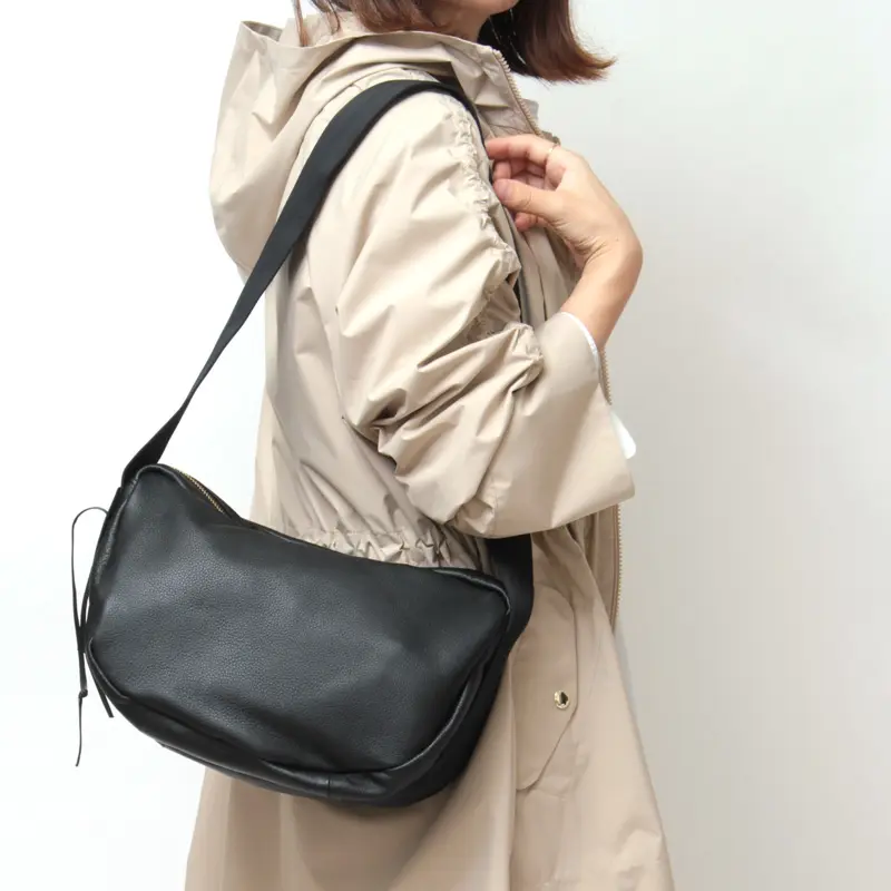 しっとりとした手触りの上質なカウレザーを使用。美しいシボが高級感を醸し出し、普段使いを品良く格上げします。シャーリングハンドルが遊び心をプラス。くたっと柔らかなフォルムの2WAYバッグは、カジュアルからきれいめまで活躍します。日本国内の職人による丁寧なものづくりが息づく、永く愛用できる逸品です。