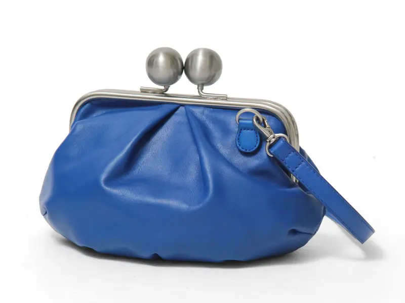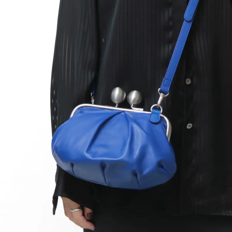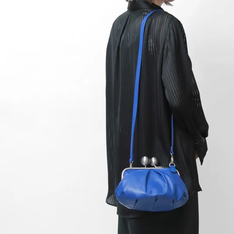 kawa-kawa カワカワ kuchigane レザー がま口 ギャザーポシェット ブルー