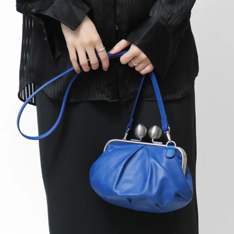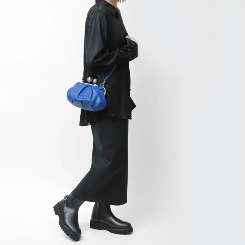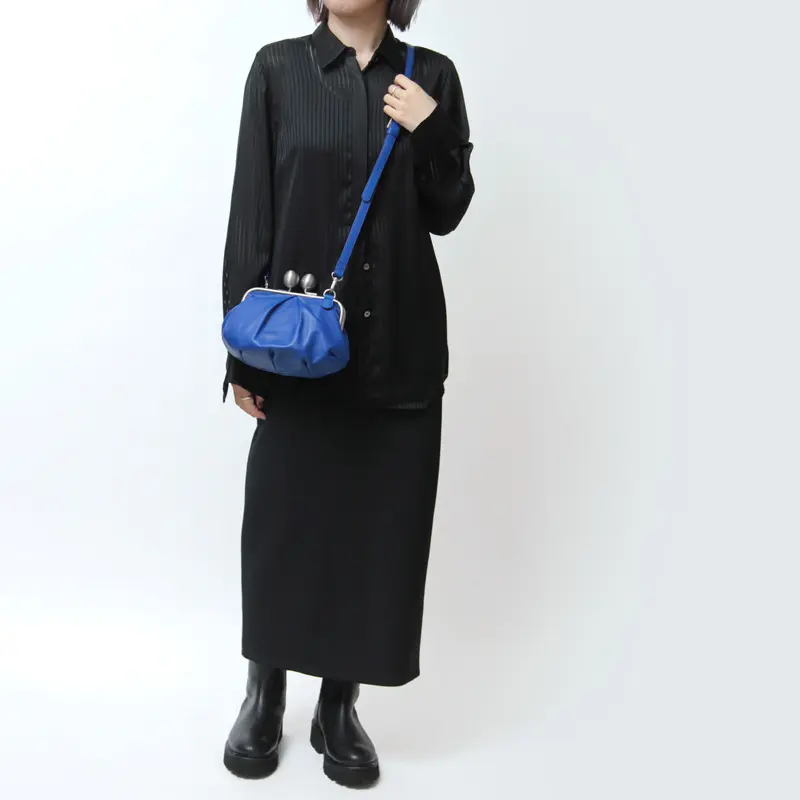 丸みのあるふっくらとしたフォルムに大ぶりのがま口デザインが、いつものコーディネートにさりげない存在感を添えます。取り外し可能なショルダーは長さ調整が可能です。華奢なデザインが斜めがけや肩がけでも上品さを引き立て、クロスボディなら両手が空きアクティブな日にも活躍します。