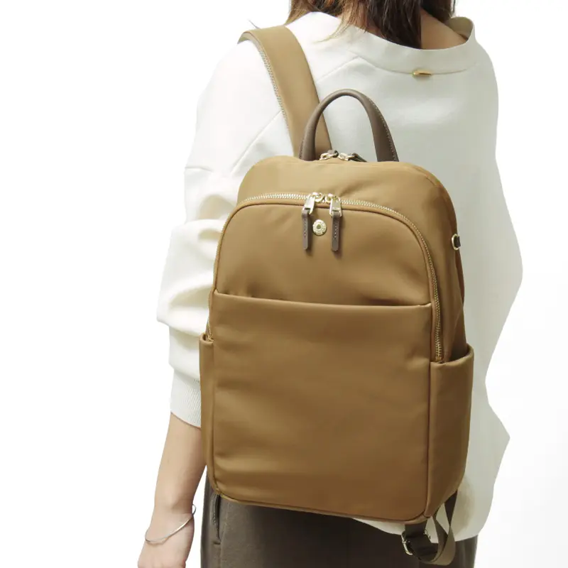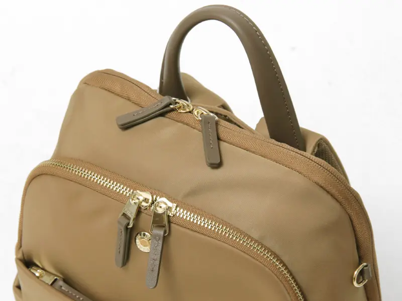 軽量で撥水性に優れたナイロン素材にレザーを組み合わせた、上品でスマートなデザインの"トプカピ TOPKAPI"の2層バックパック。13インチのPCやA4サイズがしっかり収納可能。背面のキャリーオンベルトやウレタンパッド入りショルダーなど、快適さにもこだわった設計。通勤・通学はもちろん、旅行やデイリーユースにも活躍する、実用性とデザイン性を兼ね備えたファンクショナルリュックです。