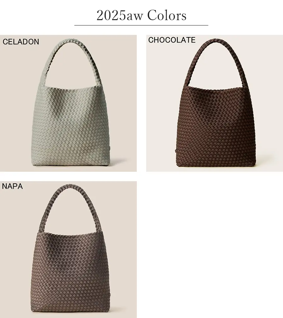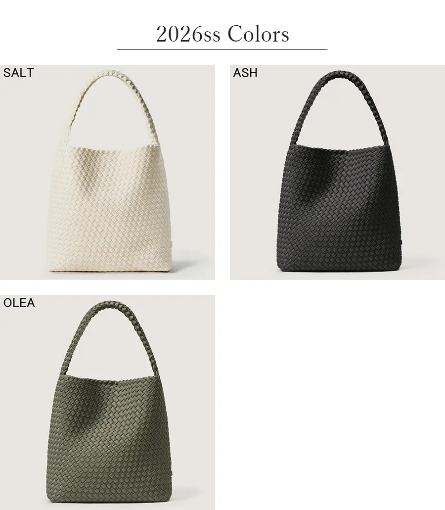 軽くて丈夫な弾力のある高密度フォーム素材を使用し、女性のライフスタイルに寄り添ったバッグを展開するNY発のバッグブランド"Naghedi/ナゲティ"。ダイビングスーツ等にも使われる機能性素材を丁寧に編み込んだメッシュ仕様のショルダーバッグ。A4ノートが横向きに収まるサイズ感。オフの日のカジュアルなスタイルにはもちろん、ビジネスシーンなど幅広いシーンで活躍してくれます。
