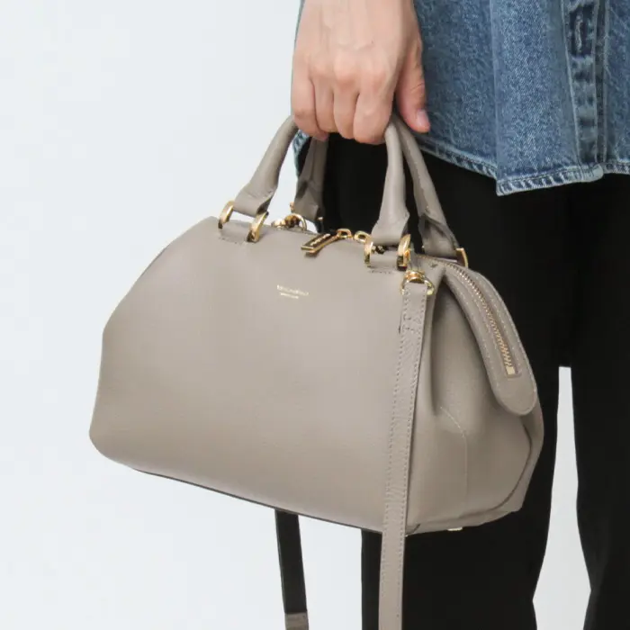 コロンとした丸みのあるフォルムが可愛らしい"VIOLAd'ORO/ヴィオラドーロ"のボストンバッグ。ボストンバッグにしては小さめですが、マチがしっかりとあり見た目以上に収納力があります。上質レザーが引き立つシンプルなデザインはどんなスタイリングにも合い、カジュアルからエレガントまでどんなコーディネートにも自然と溶け込みます。日常使いはもちろん、ちょっとしたお出かけや特別なシーンでも洗練された印象を演出する万能アイテムです。