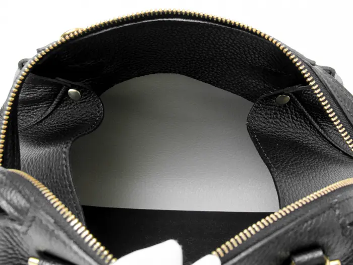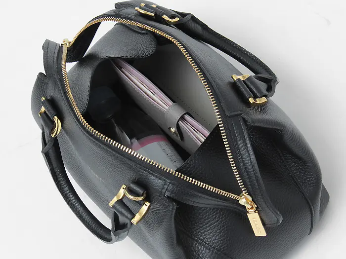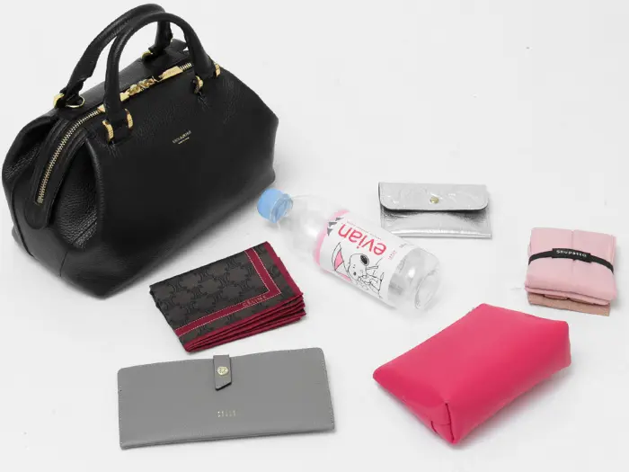 開閉はダブルファスナー仕様。開閉口も大きく開き、バッグの中身も一目瞭然。長財布などの必需品と、ペットボトルが横向きにゆったり入ります。たっぷりとあるマチで、メイクポーチなど幅があるものも収納可能です。