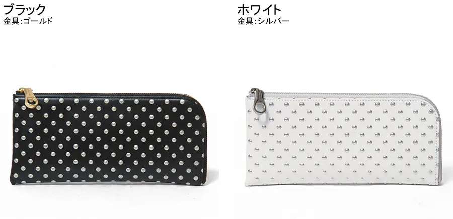 Arukan アルカン スタッズ 牛革型押し ドット L字ファスナー長財布 日本製 1317623
