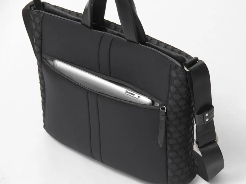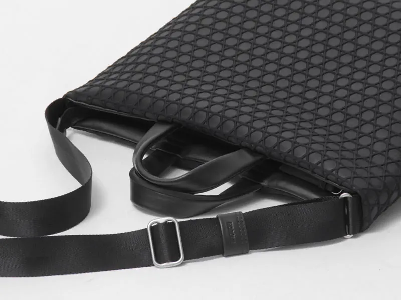 繊細で上品な籠目柄が、持つ人のスタイルを格上げ。PCや荷物で重くなりがちな通勤バッグ。サイズ感に対して重さは約530gという軽さで、肩への負担を軽減します。ビジネスユースにこだわった、機能と上質感を兼ね備えたモデルです。