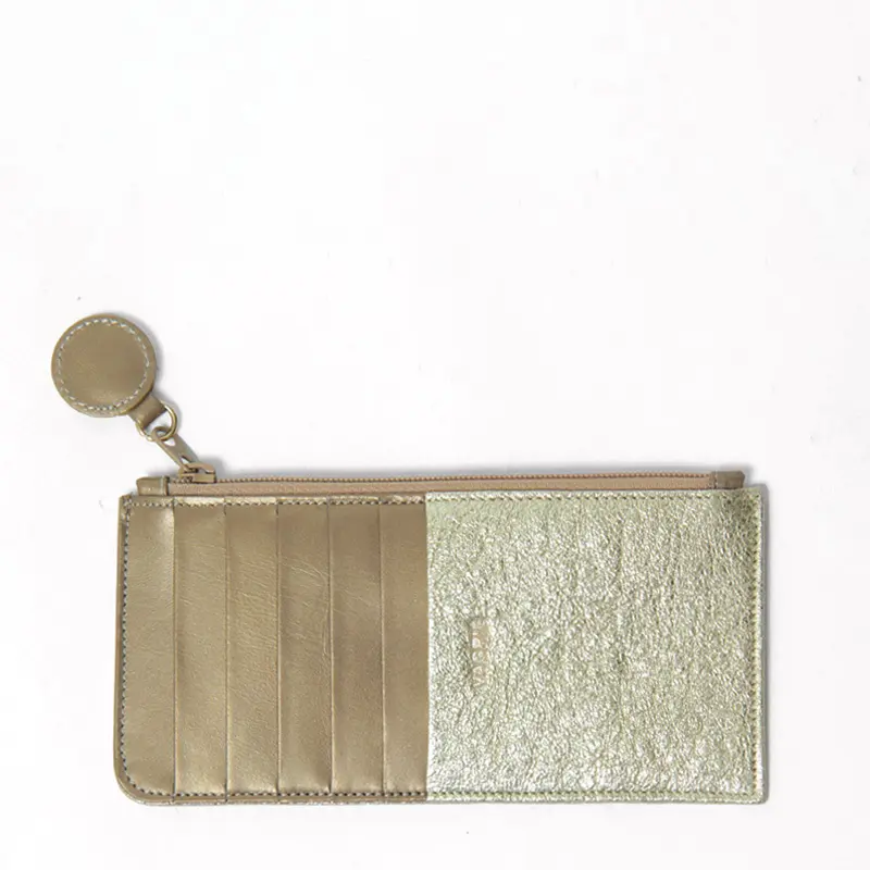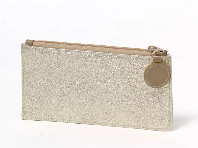 薄く柔らかな質感でありながら、耐久性に優れた山羊革を使用。「サンディオール」と「ミロワール」は、革の表面に「箔」を施し、細かなしわ模様をつける加工(シボ加工)が施され、繊細な箔の輝きがとてもきれいです。どこにもないヴァグリエらしいオリジナリティー溢れる逸品。縁起が良い華やかなメタリックカラーです。