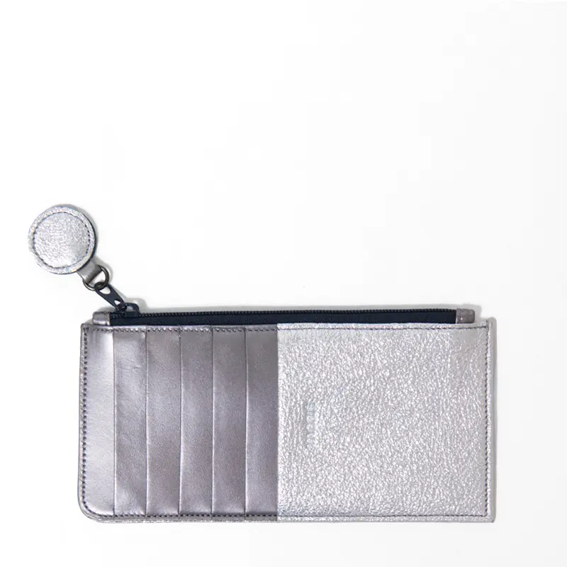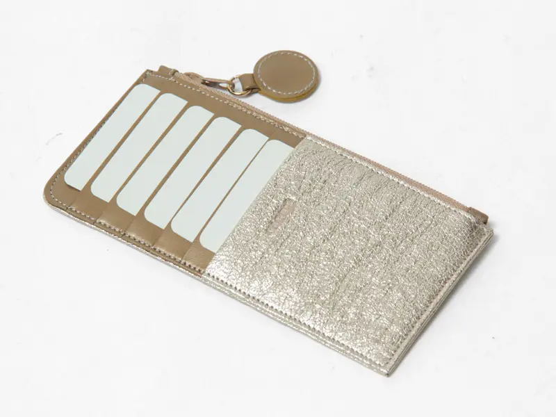 カードポケット裏にファスナーポケットを備え、お札は三つ折りで収まる設計。必要なものだけをスマートにまとめられるコンパクト仕様です。薄くて軽い、それでいて洗練されたスタイルを演出するフラグメントケース。ミニマルライフを美しく叶える一品です。