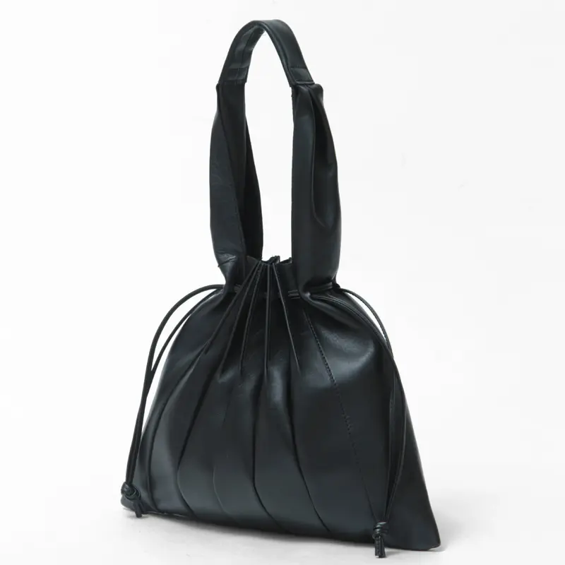 リリー LILY バッグ LILY トートバッグ ワンハンドル 巾着 本革 肩がけ 軽量 レディース ブラックリアルマインド BLACK REAL MIND アンジェ 210228 ジャバラ プリーツ