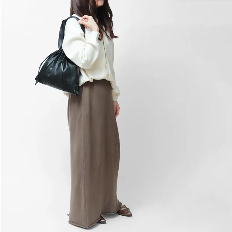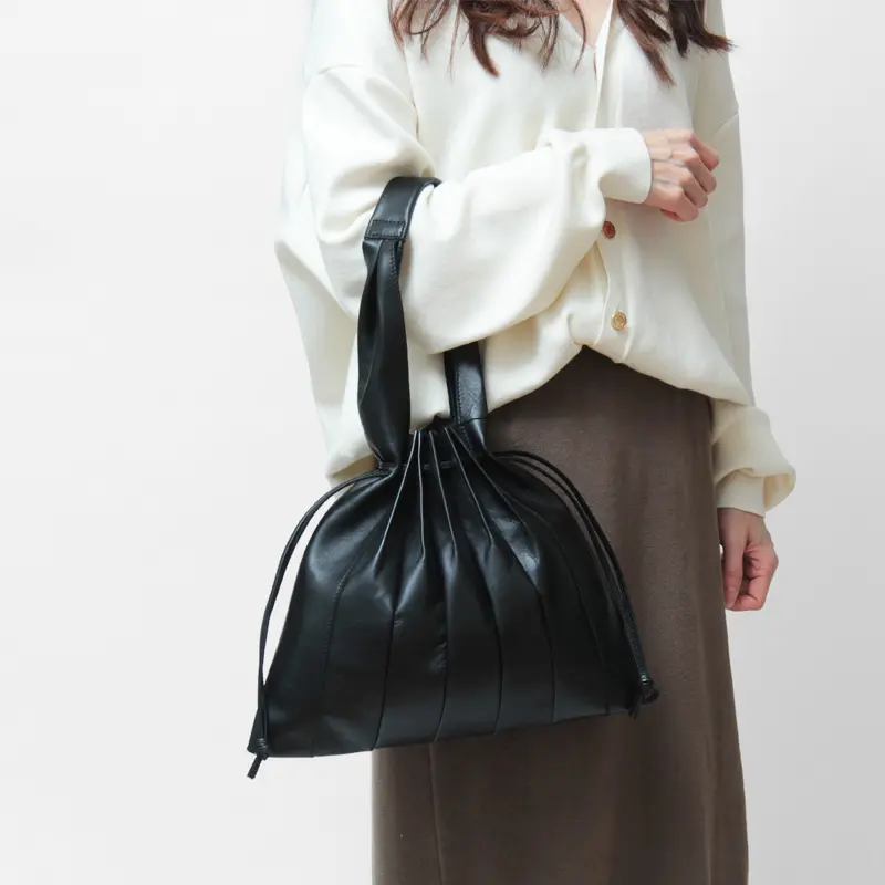 柔らかく手馴染みの良いハンドルは、太めで握りやすい仕様になっており、程よい長さがあるので肩掛けも可能。立体感のあるプリーツデザインが、いつものコーデにさりげない華やかさを添えてくれます。