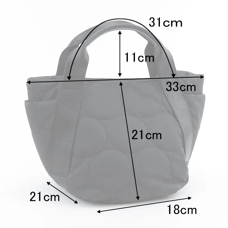 ふっくらと軽やかなドットキルティングトート。カジュアルな撥水ナイロン素材を落ち着いた質感で仕上げ、本革ハンドルが上品に引き締めます。 きれいめにもカジュアルにも決まり、大人のきれいめカジュアルスタイルに洗練された抜け感をプラス。大きすぎず、毎日のお出かけにちょうどいいサイズで、軽量だから通勤や旅行にも最適です。
