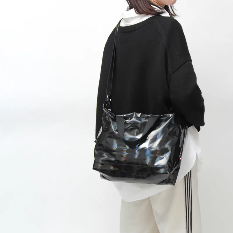 光沢感のあるメタリックカラーが魅せる、表情豊かなトートバッグ。撥水加工が施され、突然の雨でも安心してお使いいただけます。ショルダーストラップ付きの2way仕様で、軽量で快適な持ち心地に加え、両手が空くデザインはショッピングや旅行などアクティブなシーンに最適です。