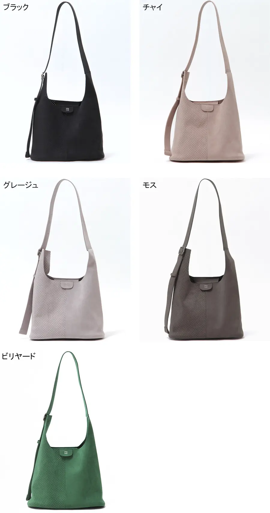 軽さと機能性を両立する、mononogu(もののぐ)の「MNNG」シリーズ。 ウルトラスエード素材を採用し、経年変化が少なく自宅で洗える点も魅力。 身体にしなやかに寄り添うホーボーバッグのミディアムサイズは、必需品+αをしっかり収納。肩掛けでも自然に馴染むデザインは、デイリーコーデのアクセントとしても活躍します。