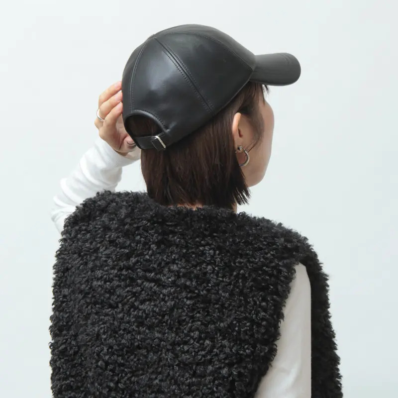 本体には柔らかく風合い豊かな羊革(ソフトナッパレザー)を使用。LWG認証を取得した環境に配慮した革です。しなやかで軽やかな質感が魅力。被るたびに手に馴染む柔らかさと、上品な風合いを楽しめます。