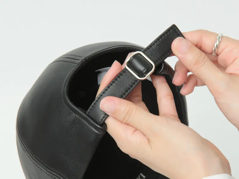 裏地には心地よいコットンを使用し、肌あたりが優しく快適な着用感を実現しています。さらに内側の紐でサイズ調整ができ、ぴったりフィットする快適なかぶり心地です。