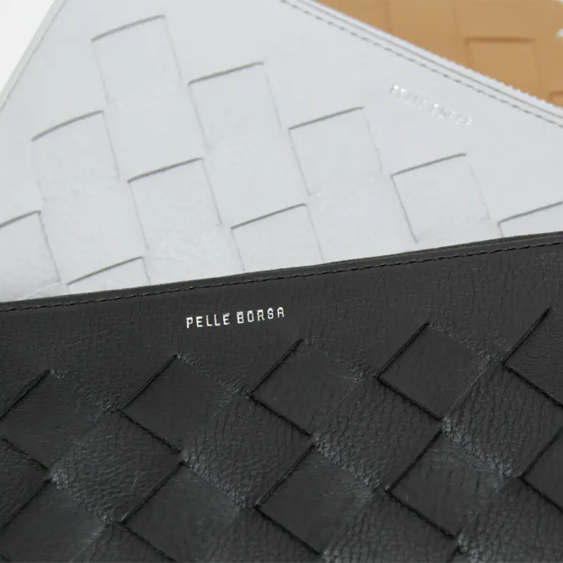 日本の老舗ブランドPELLE BORSA(ペレボルサ)が展開するChrono Weaveシリーズ。上質レザーを贅沢に編み込んだイントレチャートが、手にした瞬間から大人の品格を漂わせます。背面には片マチ仕様のコインポケットを備え、必要なものをすっきり持ち歩けるミニマルデザイン。キャッシュレスが主流の今、機能性と美しさを両立した理想の長財布です。