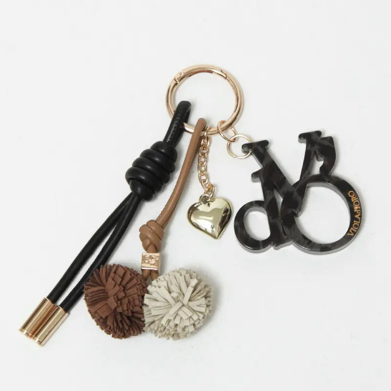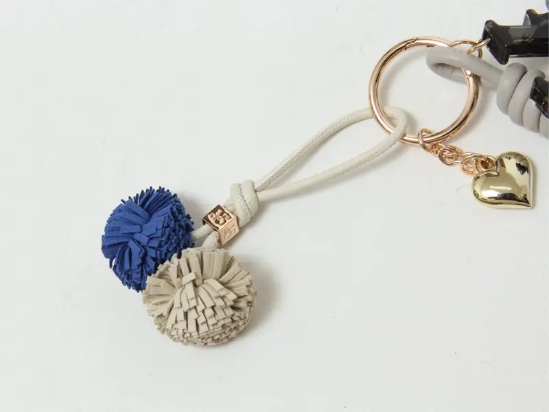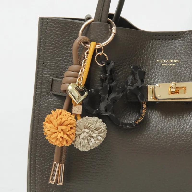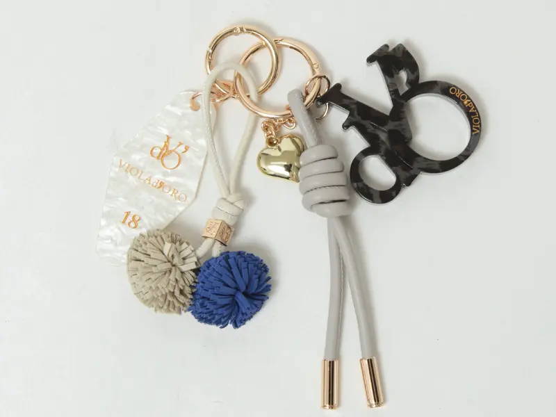 上質な素材の組み合わせと立体的なデザインが魅力の、VIOLAd’ORO(ヴィオラドーロ)のバッグチャーム。レザーコードやポンポン、ハートのモチーフ、カナビラがセットになっており、バッグにひとつ添えるだけで普段のコーディネートがぐっと華やかに映ります。