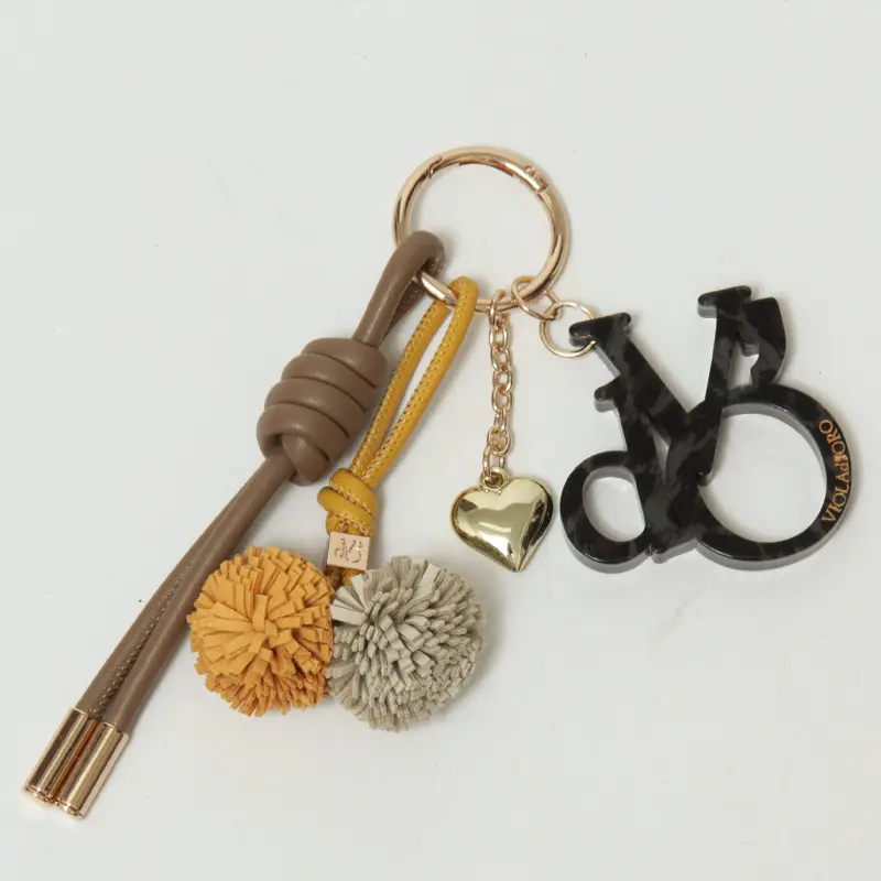 VIOLAd'ORO ヴィオラドーロ BIANCA ロゴアクリル×コード バッグチャーム カプチーノ/イエロー