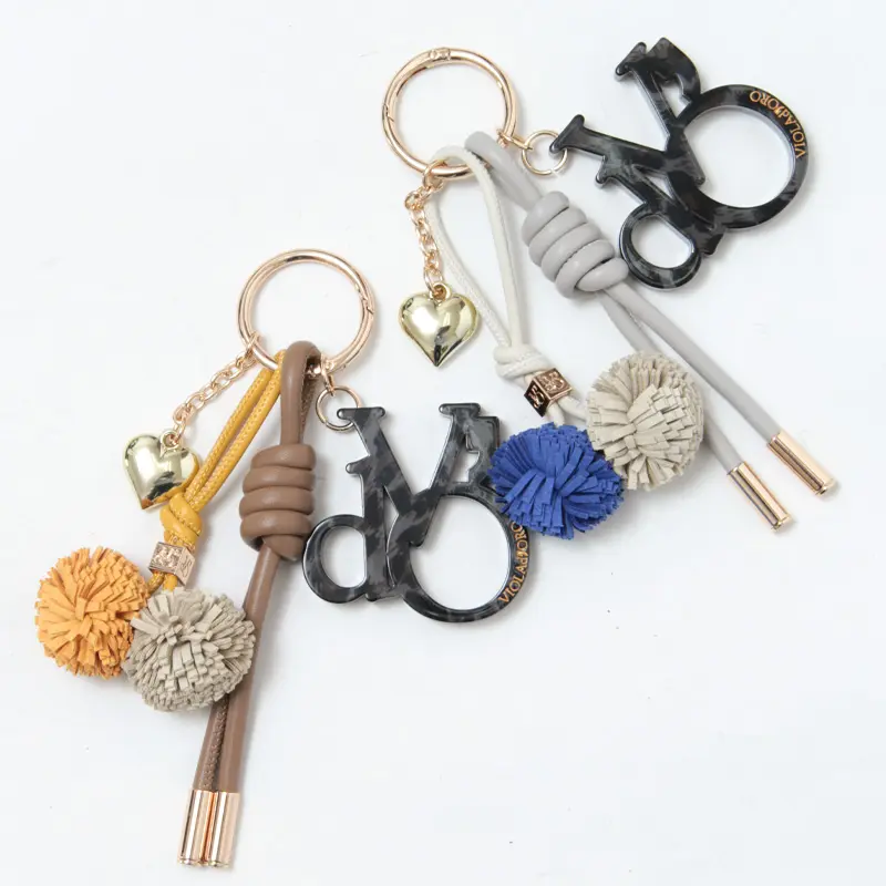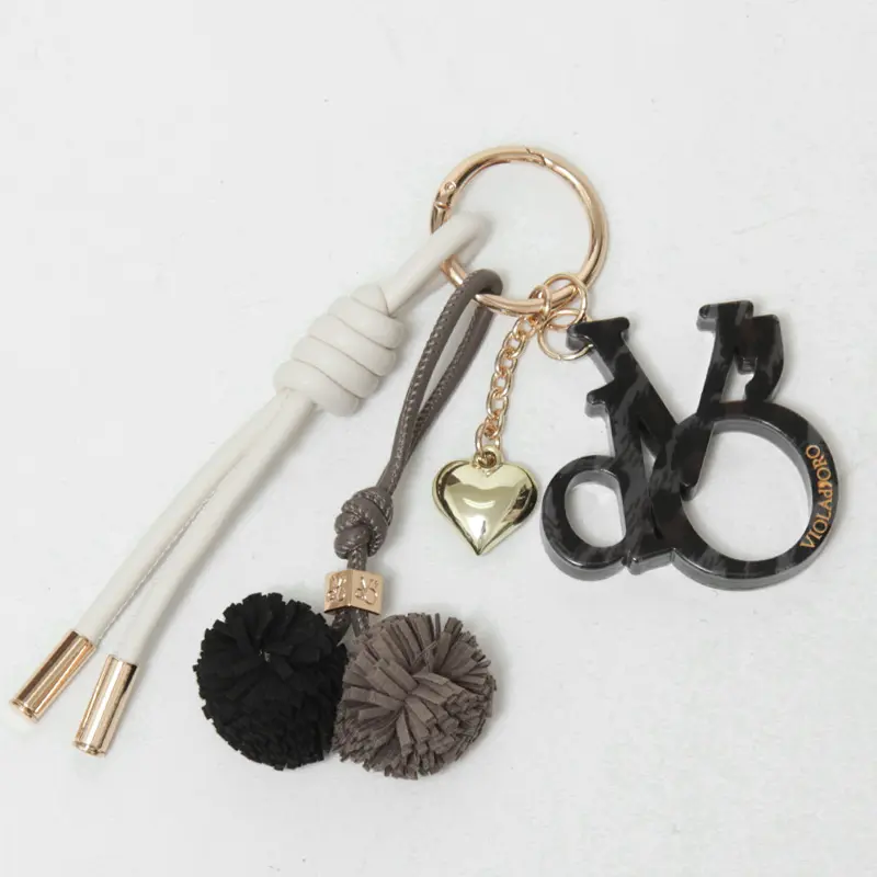VIOLAD’ORO ヴィオラドーロ BIANCA ロゴアクリル×コード バッグチャーム V-5079