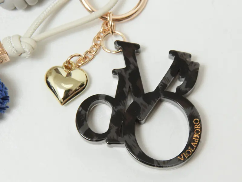 • VIOLAd'ORO ヴィオラドーロ BIANCA ロゴアクリル×コード バッグチャーム