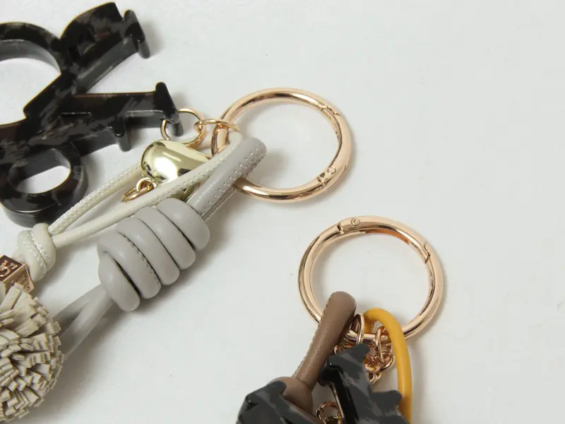 さまざまなバッグにフィットするゴールドメタルリングはカラビナ仕様。他のチャームと組み合わせればアレンジの幅は無限です。