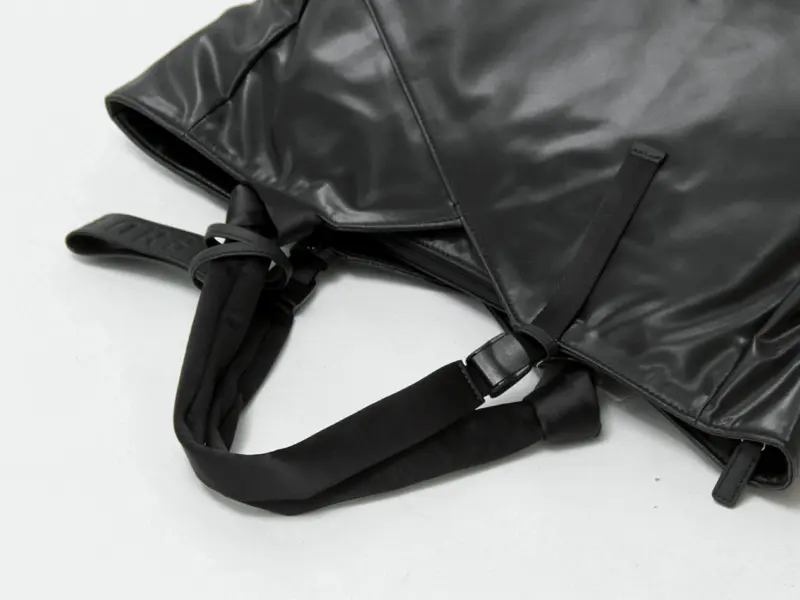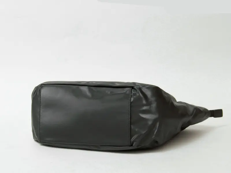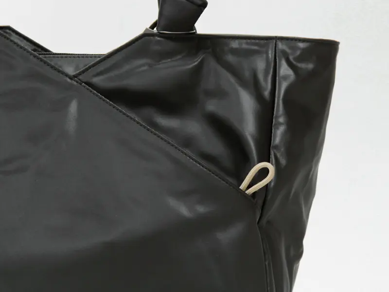 本体は、柔らかく厚みのある基布にポリウレタンを重ねた2層構造。強さとしなやかさを両立した仕上がりです。 表面には細かな絹目調のシボを施し、控えめなツヤのある上品な表情に。水にも強く、毎日気兼ねなく使える扱いやすい素材です。
