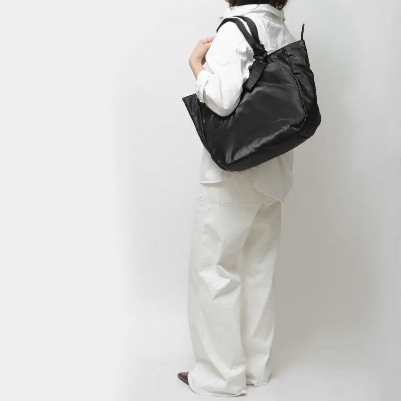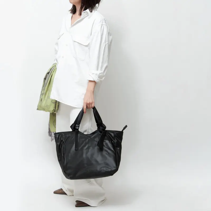 たっぷり入るビッグサイズで、旅行やジムバッグにぴったりのトートバッグ。軽量で扱いやすく、長時間の持ち歩きでも負担が少ないのでデイリー使いにも最適です。丸みをおびたフォルムで女性らしいデザインで上品な佇まい、街歩きやお仕事などあらゆるシーンに自然に馴染みます。