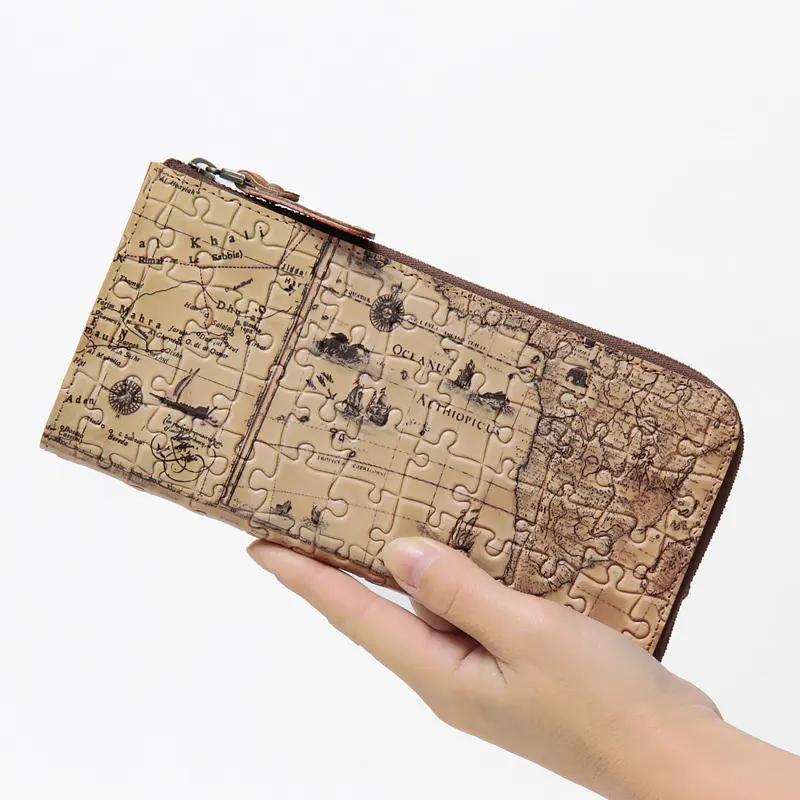 地図柄×パズル型押し長財布