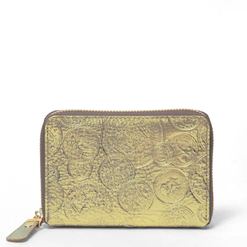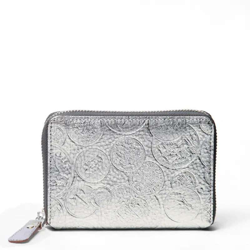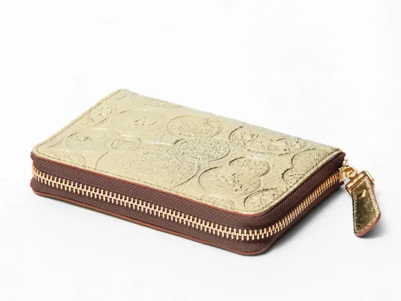 イタリアンレザーにレトロ感のある欧州のコインを型押しし、VIA DOAN別注のゴールドとシルバーの箔加工を施したお財布シリーズ。アンティーク調の風合いで、一つとして同じ柄がないため、唯一無二の表情を楽しめます。