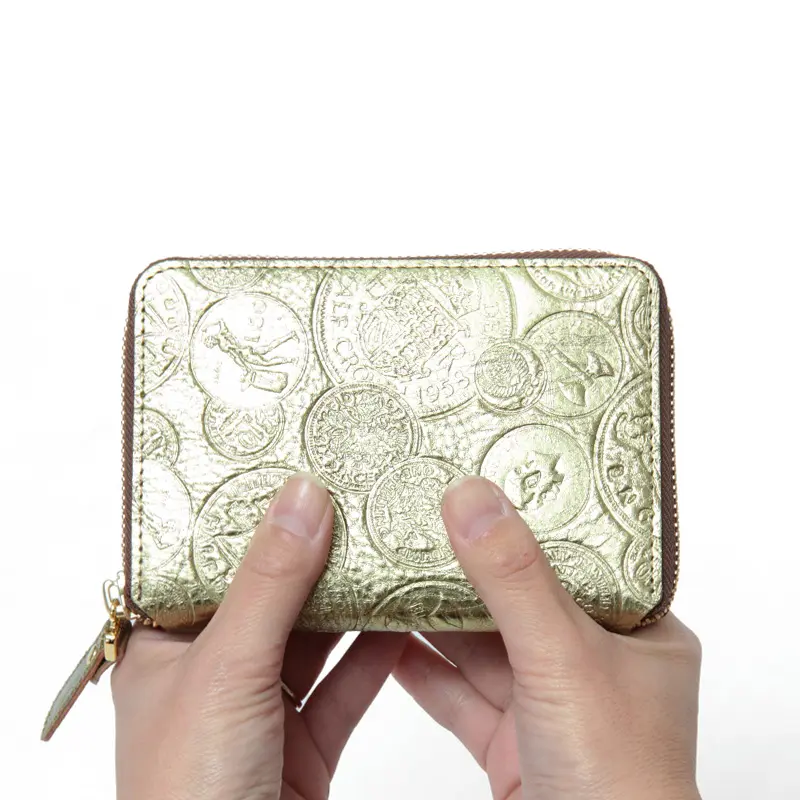 遊び心と上品さを兼ね備えたVIA DOAN(ヴィア ドアン)の“COIN コイン”シリーズ。イタリアンレザーにコイン型押しを施し、ブランド別注のゴールドとシルバー箔で華やかさを添えた、個性的で上品なデザインです。アンティーク調の風合いが魅力で、一つとして同じ模様がない“唯一無二”のラウンドファスナー短財布です。大きく開く小銭入れを備え、見た目のインパクトだけでなく使い勝手にも優れた日本製のミニウォレットです。
