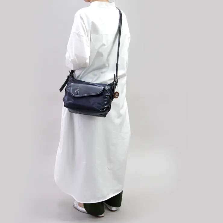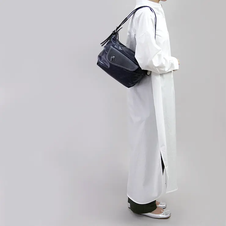 ショルダーベルトは長さ調節可能です。そのままの長さで斜めがけに、折り返して二重にすればワンショルダーバッグになり、幅広いシーンやスタイルに対応します。