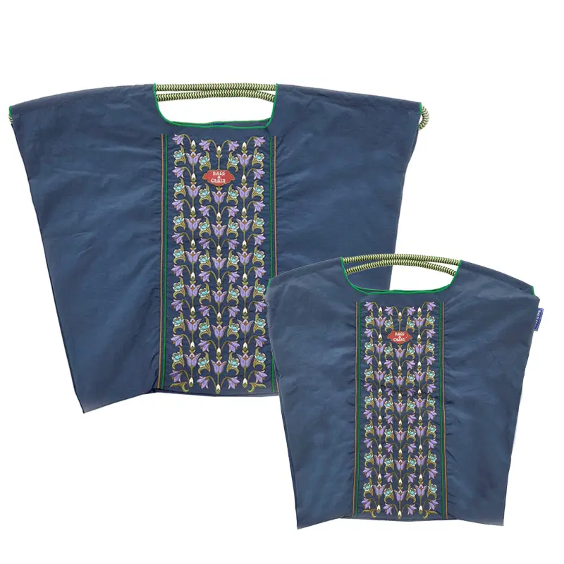 グラフィックデザインをそのまま刺繍で表現することで、上質さとデザイン性を兼ね備えた仕上がりに。また、厚手で撥水性・耐久性に優れた素材を使用しているため、重い荷物でも安心して持ち運べます。折りたたむと手のひらサイズになるコンパクトさで、普段のお買い物にはもちろん、外出先で荷物が増えたときにも大活躍。ひとつ持っておくととても便利なエコバッグです。ギフトとしても人気のアイテムです。